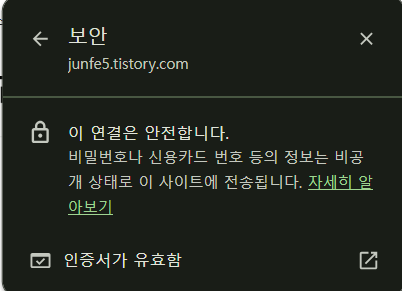 뜨는 창에서 '인증서가 유효함' 클릭