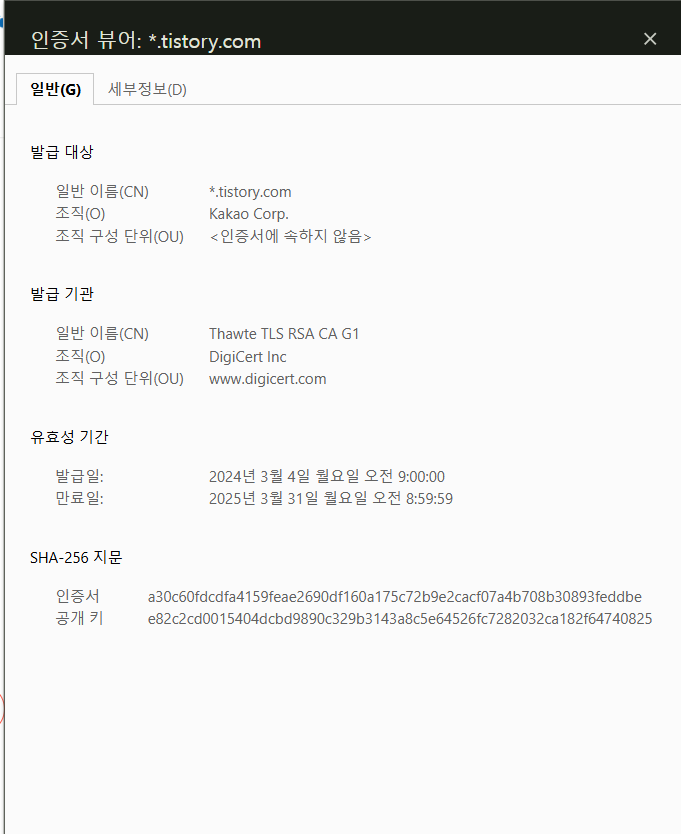 그럼 이렇게 인증서 정보와 만료일이 나온다.