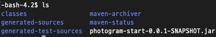완료 후에 다시 ls로 파일명들을 보면 target 이라는 폴더가 생성된 것을 볼 수 있다.
