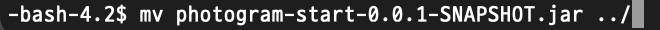 이 파일을 실행해야 하는데 파일을 target폴더 안에서 실행시키지 말고 아래 명령어를 통해 jar파일을 한 경로 위로 가지고 온다.