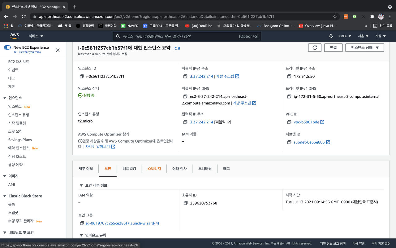 AWS로 프로젝트(Spring boot, Maven, Jpa, mariaDB) 배포하기(1) - EC2(Linux) 생성 및 설정 (0) | 2021.07.14 |