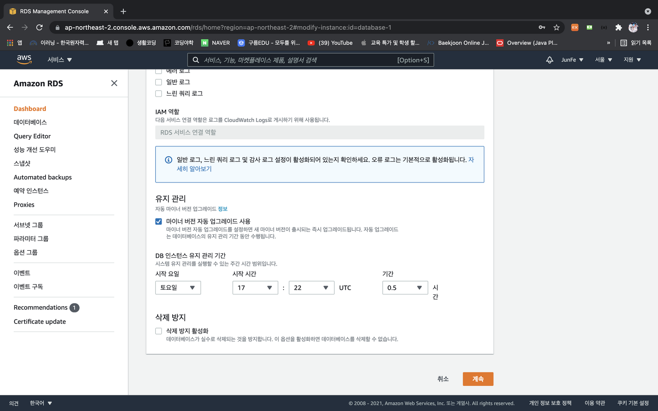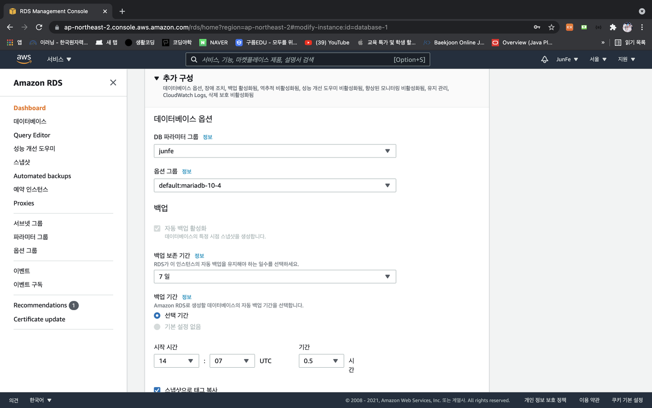 AWS로 프로젝트(Spring boot, Maven, Jpa, mariaDB) 배포하기(2) - RDS(Maria DB) 생성 및 설정 (2) | 2021.07.27 |