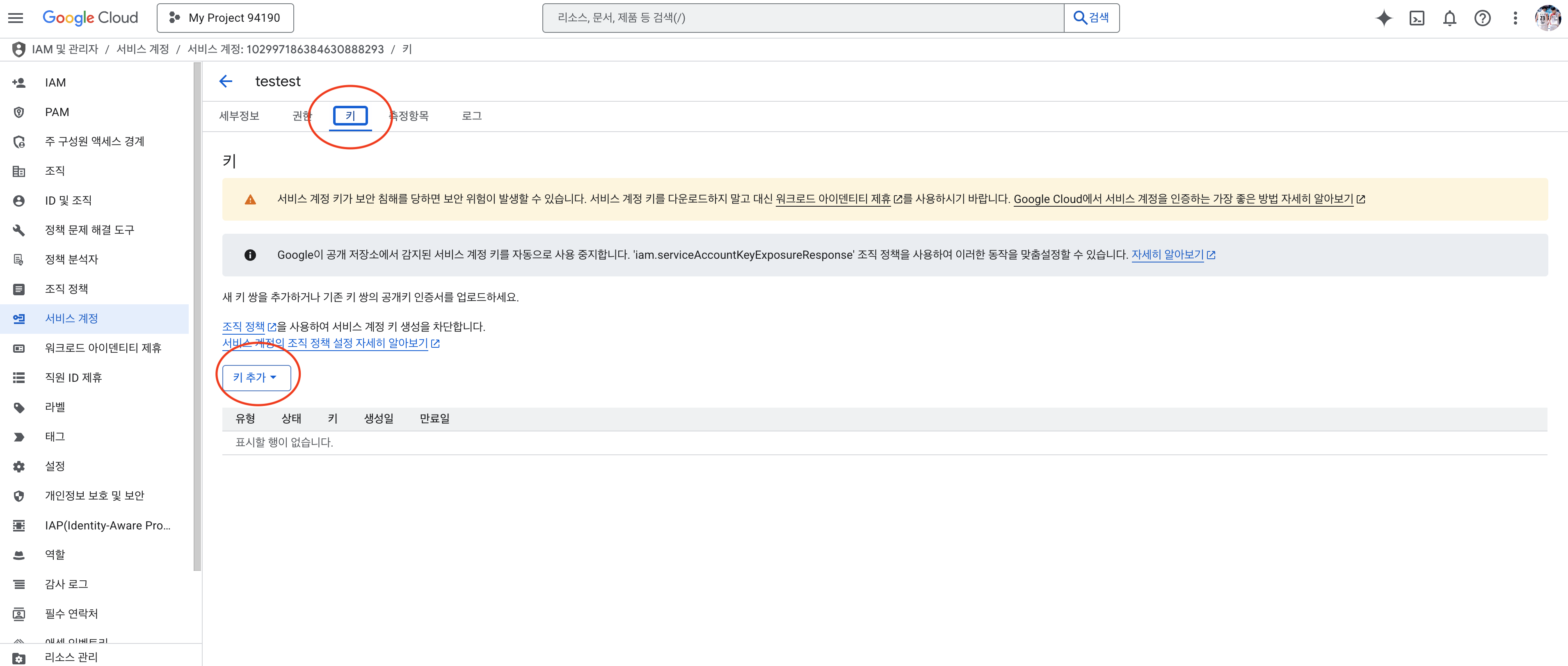 이 시트 정보와 저장한 JSON 키값으로 프로젝트와 구글스프레드시트 연동 진행함.